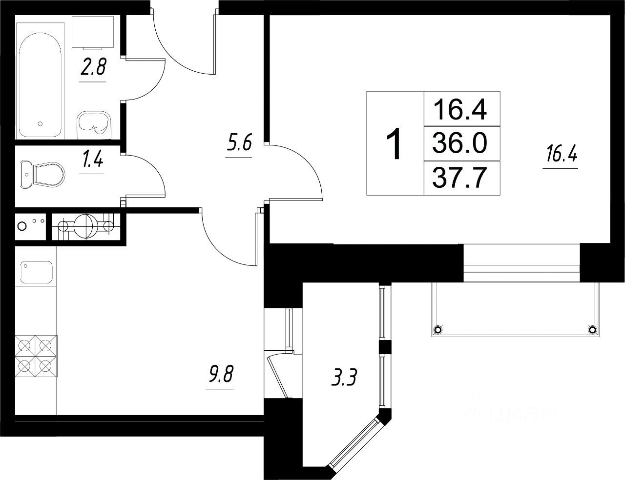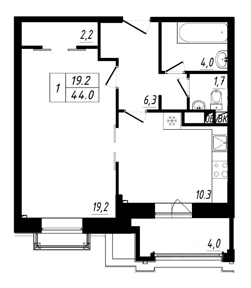 1-комнатные квартиры - от 27.20 до 52.10 кв.м. / от 2.2 до 5.1 млн. руб.