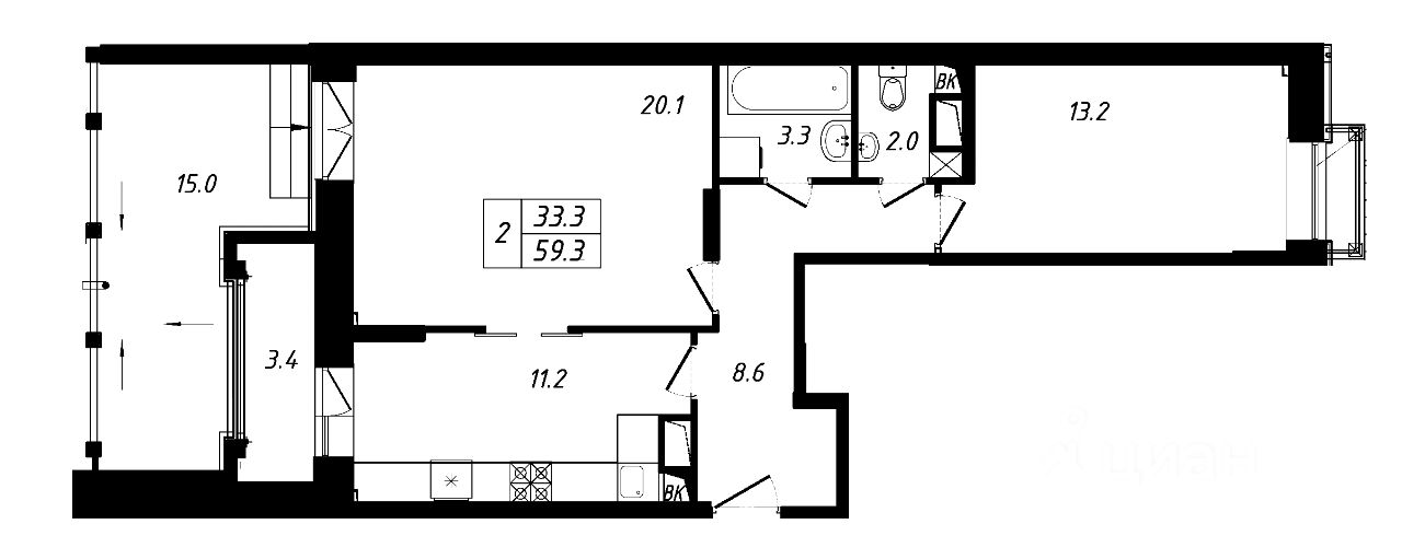 2-комнатные квартиры - от 41.00 до 87.80 кв.м. / от 3.1 до 12.1 млн. руб.